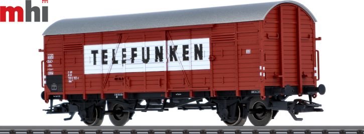 Lukket 2 akslet godsvogn type Gbkl 238 tidligere Type "Dresden" fra Deutschen Bundesbahn (DB) indsat for radio/tv fabrikken TELEFUNKEN i driftstilstand som i driftsårene omkring 1972.