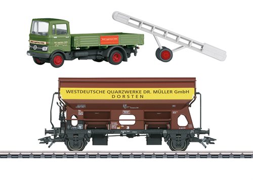 tag bevægeligt. En model af en Mercedes-Benz LP 608 ("Wörther 1") lastbil fra Schuco er inkluderet.