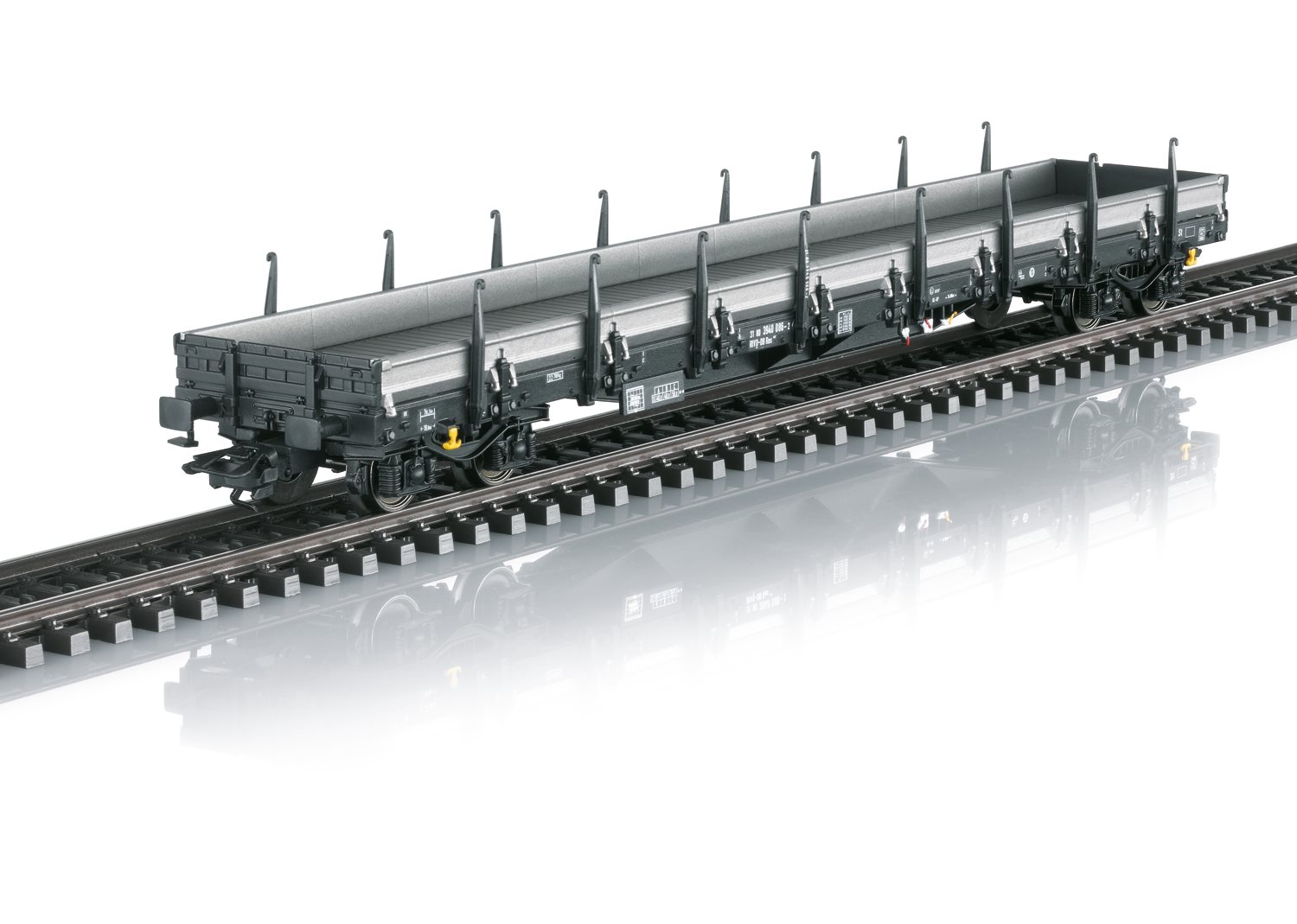 Model: Fireakslet lavsidevogn type Res 687 fra Deutsche Bahn AG (DB AG). Europæisk standarddesign med en længde på 19,90 m. Udgave med sidevægge i aluminium, foldbare støtteben og kantede buffere. Driftstilstand fra 2018.