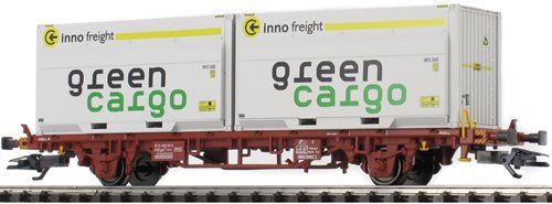 Komplet godsvognssæt bestående af 3 forskellige 2 akslede containervogne Type Lgjns fra Svenske Statsbaner med WoodTainer XXL fra Green Cargo i aktuel driftstilstand som i årene omkring 2015.