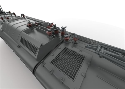 Model: Helt nyt design, chassis med hovedramme og lokomotivkarrosseri lavet af trykstøbt zink. Mange vedhæftede messing centrifugalstøbninger. Med mfx digital dekoder med op til 32 funktioner, indbygget bufferkondensatorkonfigurerbar, kontrolleret højtydende drev og omfattende lydfunktioner såsom kørestøj, blæser, motorfløjte, andre meddelelser og advarselsmeddelelser. Drift med vekselstrøm, jævnstrøm, Märklin Digital og DCC mulig. Højtydende motorer, der drives på alle aksler. Strømbuffere kan parameteriseres. I digital drift kan motoriserede tagstrømaftagere hæves og sænkes. Hvide/røde LED-forlygter ved ændring af kørselsretning, konventionelt i drift, digitalt styrbar. Maskinrumsbelysning kan skiftes, LED-belysning i førerhuset samt startlampe afhængigt af kørselsretningen. Åbning af førerhusdøre, indvendigt udstyr, førerhus med lokomotivførerfigur. Skrivebordsbelysning. Metalstyr og mange andre fastgjorte detaljer såsom: skjolde, vinduesviskere, fløjte og meget mere bufferplanker med fjederbuffere og påsatte bremseledninger. Fjernbetjent telexkobling bagpå, skruekobling foran. Hver kan udskiftes med den anden koblingstype (medfølger). Mindste køreradius 1.020 mm. Længde over buffer 60,9 cm. Vægt ca. 6,9 kg.