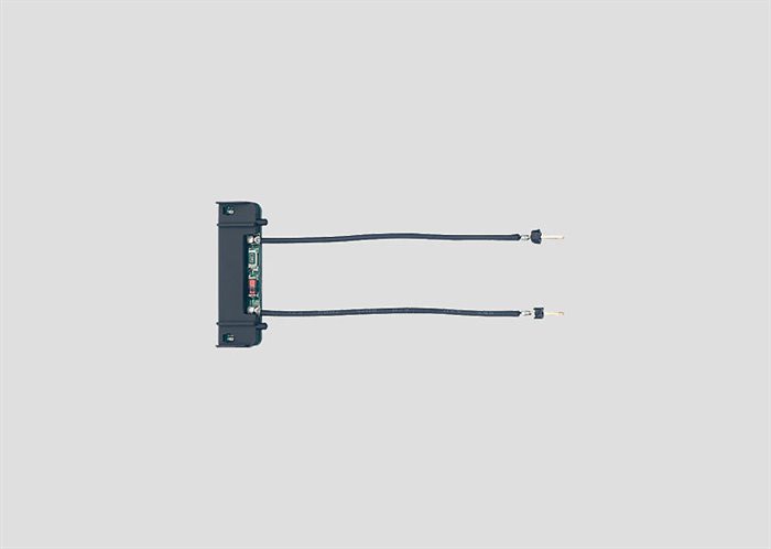 Universal print med 2 røde lysdioder til slutbelysning på blandt andet TEE-vogne og øvrige nyere vogne på 28.2 cm. Tilslutning via de to påloddede ledninger / stik. Til strømforsyning anbefales tilslutningssættene 73404, 73405 eller 73406 endelig kan de strømforende koblinger 72020 bruges sammen med hjulstelsættet 72050.