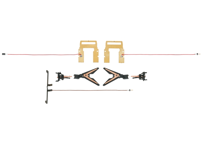 Afløselige nærkoblinger med enkeltpolet elektrisk forbindelse til belysning af eksprestogsvognene af standarddesign 1928-30 med lavere bufferhøjde i henhold til NEM 303. Egnet f.eks. til de forberedte vogne 42500, 42510, 42520, 42521, 42530, 42540 ved installation af LED-indvendigt belysning 73410/73411. En vogn i et tog kræver en sliber 73406. Indhold: 2 strømførende tæt koblingshoveder til standard koblingsbeslag med kontakter, 2 koblingstrækstænger med indbyggede kontaktfjedre, 2 afstandsplader med loddekabler, 1 jordfjeder til bogien med loddet kabel, installationsvejledning. Kobling og frakobling af systemet er mulig manuelt, og kobling kan også bruges med almindelige nærkoblinger uden elektrisk kontakt.