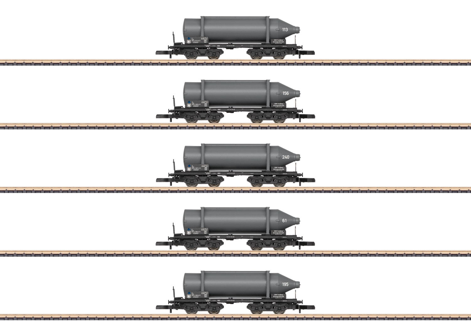 Prototype: 5 hårdmetalflaskevogne. SKW Trostberg AG's privatbiler er ansat af Deutsche Bundesbahn (DB). Alle biler i tilstanden af epoke IV.