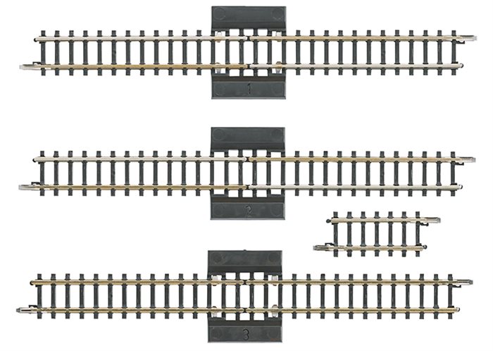 Sættet består af 3 x skillespor, længde 110 mm og et lige spor, længde 25 mm.