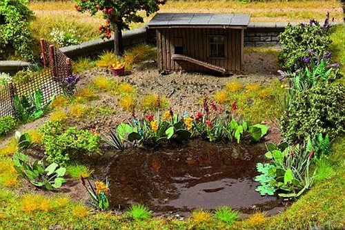 ..farverig mangfoldighed! Blomster kan findes næsten overalt. Fx plantes roser, tulipaner, georginer, påskeliljer osv. i haver og bede. Men vi kan også finde tusindfryd, koben, kornblomster, lavendel og mange flere af deres farverige slægtninge i naturen, i kanten af ​​skoven eller stien, ved vandløb og damme. Vores blomster er en smuk lille nyskabelse: I et bed af 4 mm lange grønne fibre er nogle 9 mm lange fibre flokket i farver. På denne måde kan vidunderligt naturligt udseende blomster gengives i modellen Sættet indeholder i alt 250 blomster, hver i fem forskellige farver. Med de lyse farver i dette sæt kan du dekorere tulipaner, roser, påskeliljer, tusindfryd, påskeliljer, dahliaer og meget mere. m. plante i modellen. Blomsterne tages ud af æsken og fikseres i modellandskabet med en dråbe lim. Vi anbefaler at bruge NOCH Landscaping Glue, men varm lim eller universallim er også ideelle.