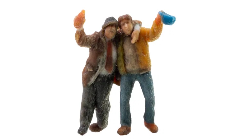 De 3D-printede figurer "Saufbrüder" bringer en hyggelig atmosfære og humoristiske scener til ethvert modeljernbaneanlæg eller diorama. Miniaturerne viser to godmodige herrer med hævede ølkrus – perfekte til realistisk at genskabe folkefestivaler, ølhaver, gadefestivaler eller rustikke pubscener.