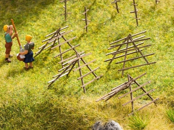 Opgrader din modeljernbane eller diorama med disse autentiske Noch 14251 Høstativer i Laser Cut design. Disse fint udskårne høstativer er perfekte til at tilføje realisme og detaljer til dit landskab i skala H0. Fremstillet af Noch, en førende producent inden for modeljernbanetilbehør, garanterer disse høstativer høj kvalitet og holdbarhed.