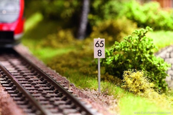 mini-hektometerpladerne er markeret i en 200 meters afstand. Sættet indeholder 25 brædder med for-