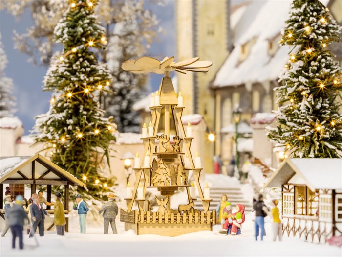 Noch 14395 Julemarkedspyramide, træ incl lys. Lasercut, H0
