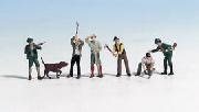 Sættet inkluderer syv nøje udformede figurer: en jæger, skovarbejdere, og en trofast hund, som alle tilsammen skaber en livlig og realistisk skovscene. Figurene er skaleret til H0-størrelse (1:87), hvilket gør dem ideelle til standard modeljernbaner og miniaturelandskaber.