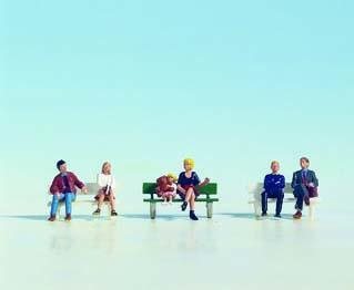 Opgrader din modeljernbane eller diorama med 'Noch 15530 Siddende figurer med en bænk'. Dette sæt indeholder seks livagtige, detaljerede figurer i forskellige stillinger, akkompagneret af en realistisk bænk, perfekt til at tilføje en autentisk stemning til enhver scene.