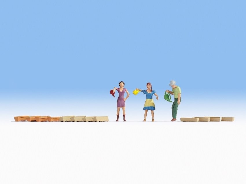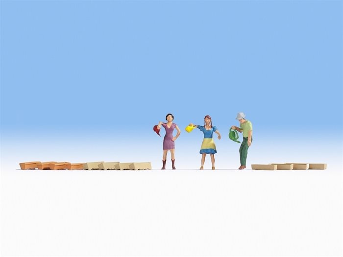 Noch 15570 Mennesker med vandkander og blomsterkasser, tre figurer og 12 kasser, H0