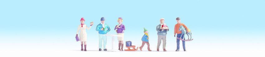 Sættet inkluderer seks detaljerede figurer, der hver især bidrager til den festlige atmosfære. Fra glade børn med vinterbeklædning til voksne, der nyder markedets lækkerier, hver figur er nøje håndmalet for at sikre høj kvalitet og realisme. Placer dem rundt om et julemarkedssceneri for at bringe din scene til live med ægte julestemning.