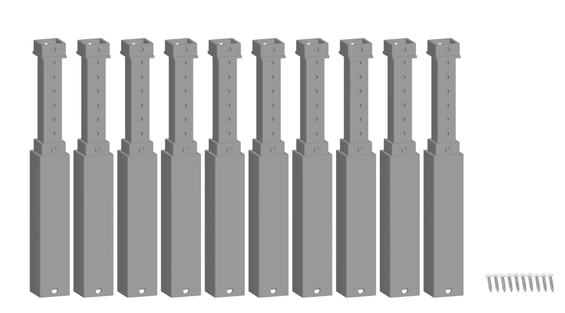 Sættets indhold: 10 søjleelementer, højdejusterbar