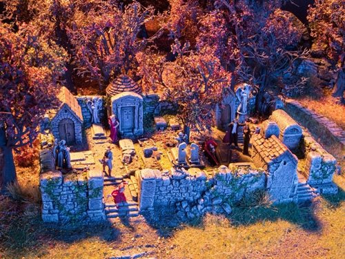 Køb nu og forvandle din modeljernbane med denne smukt udformede kirkegård fra Noch, en førende producent inden for modeljernbanetilbehør. Denne kirkegård er ikke blot en model; den er en historiefortæller, der bringer din miniatureverden til liv.