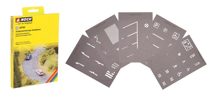 Noch 60745 Vejmarkering skabeloner, 5 stk, med 43 markeringer, H0
