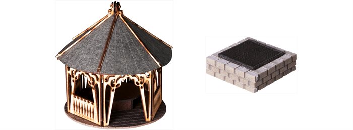 laserskårne byggesæt til de matchende figurer og dekorationsmaterialer. Der medfølger endda en