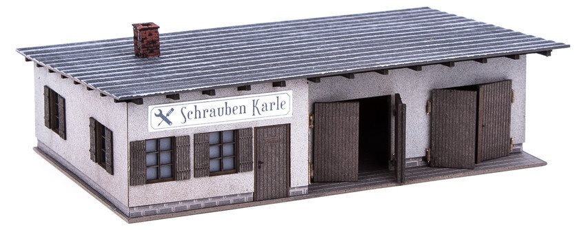 Noch 66112 Landsby værksted, "Schrauben Karle" Laser´cut byggeæt H0