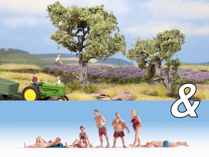 Opgrader din modeljernbane eller diorama med "Noch 94001 Dekorationssæt, badende og oliventræer, H0" for at tilføje liv og realisme til din scene. Dette sæt fra den velrenommerede tyske producent Noch, er perfekt til detaljerede landskabsopbygninger i skala H0 og tilføjer både charme og naturtro detaljer til din modelverden.