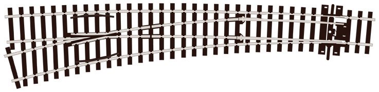 Peco SL-E 187 Venstre sporskifte, buet, code 75, H0
