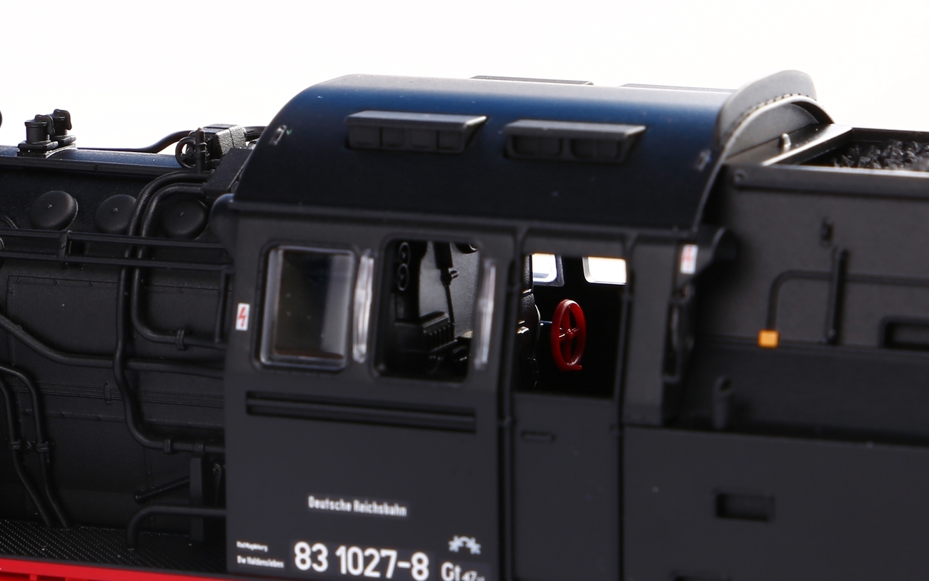 Med den nybyggede PIKO klasse 83.10 af DR er der nu for første gang en storstilet produktionsmodel af denne usædvanlige lokomotivtype, der er velegnet til drift.lokomotivtype. I overensstemmelse med prototypens særlige karakter kan den fint detaljerede PIKO-model også præsentere sig selv som et fremragende lokomotiv. Det karakteristiske lokomotiv i trekuppelt design med tre-lys forlygter imponerer med den enestående succesfulde implementering af prototypeproportionerne og kommer med en række ekstra dele, herunder mange fine linjer, vindafvisere, klokke, fløjte, dæksler på vandkasserne , generator, trin til bufferbjælken, stiger, håndstænger, varmeledninger og sandrør. De fine egerhjul, filigranstyringen samt det detaljerede førerhusinteriør gør desuden lokomotivet til et blikfang på layoutet. PIKO BR 83.10 er også teknisk up to date og har førerhusbelysning, løbetøjsbelysning, LED-forlygter og mulighed for at udstyre lokomotivet med røgsæt.røgsæt. Den kraftige motor i kombination med 2 indbyggede trækkraftsdæk giver tilstrækkelig trækkraft til alle prototypiske togsammensætninger. Installation af en digital dekoder samt eftermontering med lyd er muligt uden problemer. Centerlederversionerne af modellen er fra fabrikken udstyret med mfx®-kompatible digitale dekodere. Desuden har lydlokomotiverne allerede et røgsæt på fabrikken. Bremseslanger, togkroge og lange beskyttelsesrør følger med modellen