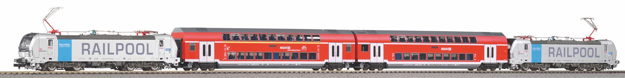 PIKO tilbyder et tematisk passende togsæt med to motordrevne lokomotiver med forskellige vognnumre tæt baseret på prototypen. Tro mod prototypen er begge Vectron-lokomotiver designet i Railpool-print. Dørene til begge lokomotiver har reklame for PIKO. Der medfølger også en 1./2. klasses dobbeltdæks personvogn og en 2. klasses vogn. Tekniske højdepunkter omfatter den retningsafhængige hvide/røde LED-lysændring, metalstrømaftagerne, profilerede hjulsæt, forberedt lydeftermontering, det omhyggeligt printede hus, den kraftige motor med svinghjulsmasse og koblingsaksler i henhold til NEM 362 på alle biler. Med deres PluX22 interfaces er lokomotiverne ideelt udstyret til installation af en digital dekoder.