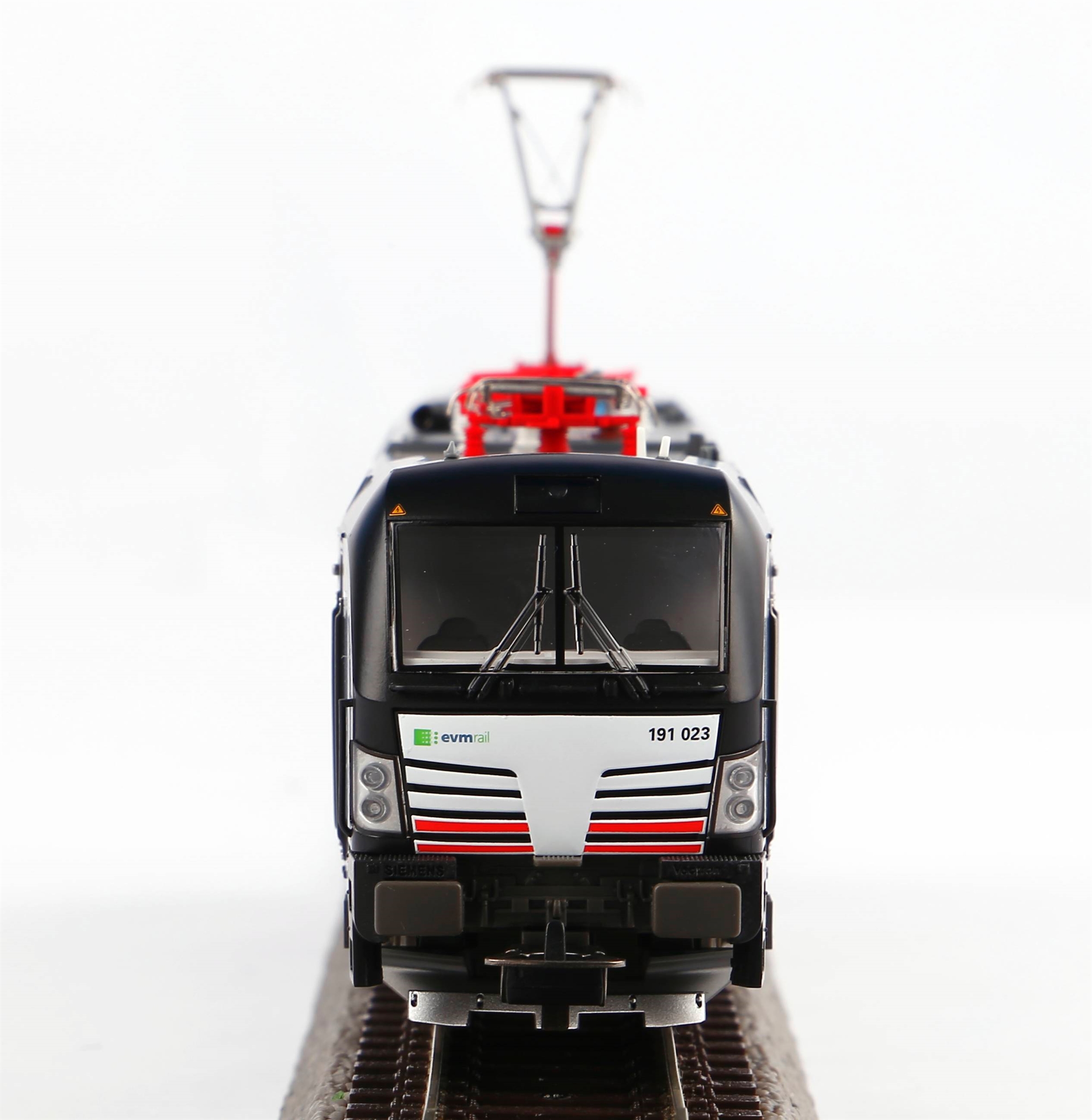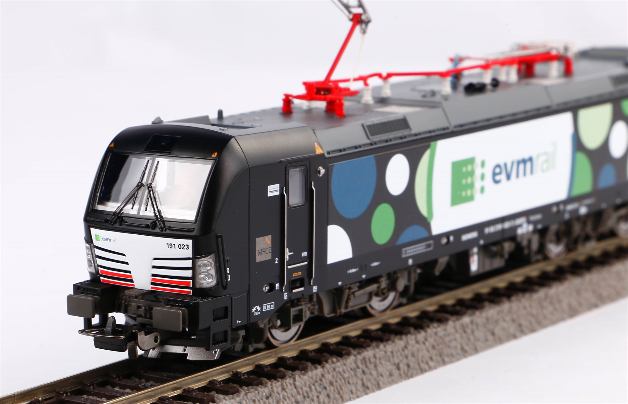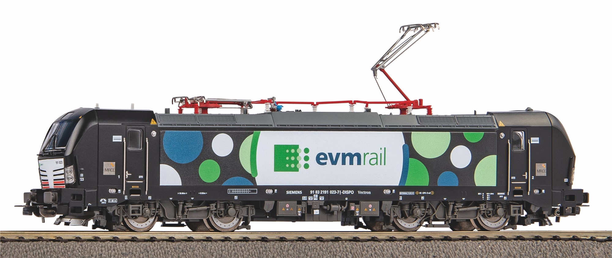 Med EVM Rail BR E.191 leverer PIKO en yderst præcist fremstillet model baseret på en solid støbt zinkramme og udstyret med gennemprøvede PIKO-standarder, inklusive talrige ekstrafunktioner. Den gennemprøvede PIKO-motor med to store svinghjul sikrer fremragende køreegenskaber. Lokomotivets trækkraft, som drives af alle fire aksler, øges af to trækdæk, der er anbragt diagonalt i forhold til hinanden på de indre aksler på begge bogier. Forlygterne og baglygterne er oplyst af LED'er, hvis røde eller hvide farve ændrer sig afhængigt af kørselsretningen. Denne models elegante ydre fremtoning omfatter et harmonisk gengivet teknisk "taglandskab" og omhyggeligt detaljerede bogier med prototypiske hjulskiveprofiler. Lydversionen af ​​modellen leveres allerede med en passende PluX22 lyddekoder.