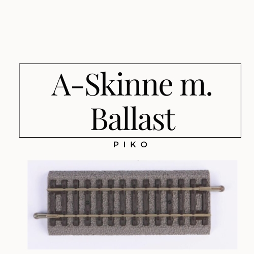I Piko sortimentet findes to forskellige skinnetyper her i webshoppen. Den ene type er Piko A skinner uden ballast, den anden type er Piko A skinner med ballast. Piko's skinner uden ballast har et meget realistisk udseende, hvor Piko's A skinner med ballast er meget støjdæmpende.