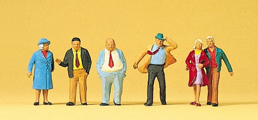 Opgrader din modeljernbane med Preiser 10124 Passagerer - et sæt af seks detaljerede figurer i H0-skala, perfekte til at bringe liv og autenticitet til dine togscener. Dette sæt fra den velrenommerede tyske producent, Preiser, er kendt for sin ekstraordinære kvalitet og realisme, hvilket gør det til et must-have for enhver modeljernbaneentusiast.