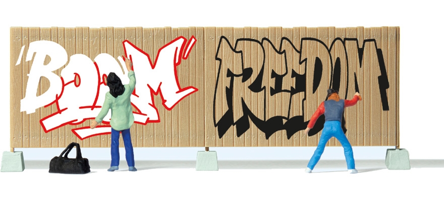 Preiser 10334 Grafitti malere, to figurer og et skilt H0