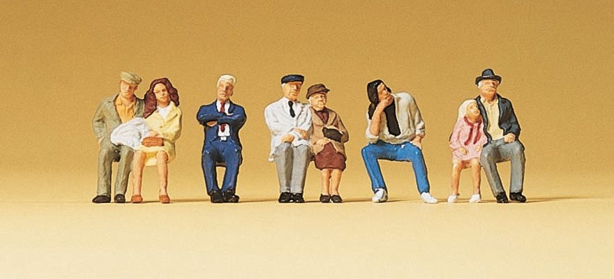 Preiser 10384 Ventende passagerer, otte figurer, H0