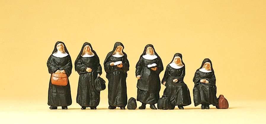 Bestil dit sæt i dag og bring en atmosfære af ro og historie til din modeljernbane eller diorama med Preiser 10402 Nonner, seks figurer i H0-skala.