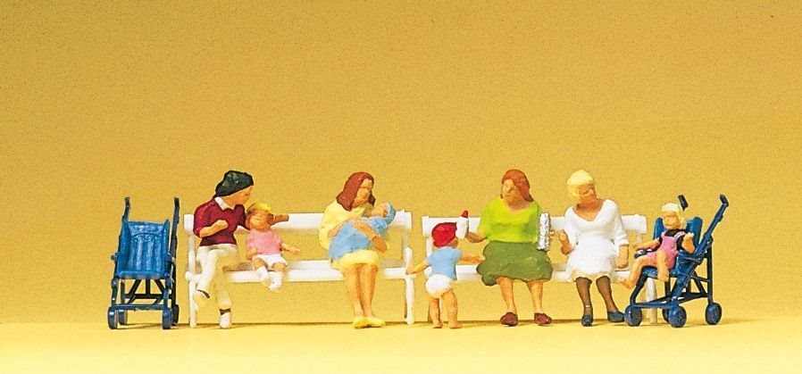 Preiser 10522 Siddende mødre med børn, 4 voksne og tre børn, H0