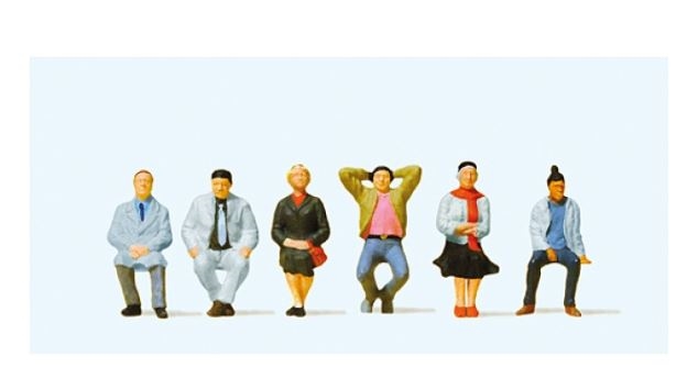 Preiser 10537 Siddende rejsende, seks figurer, H0