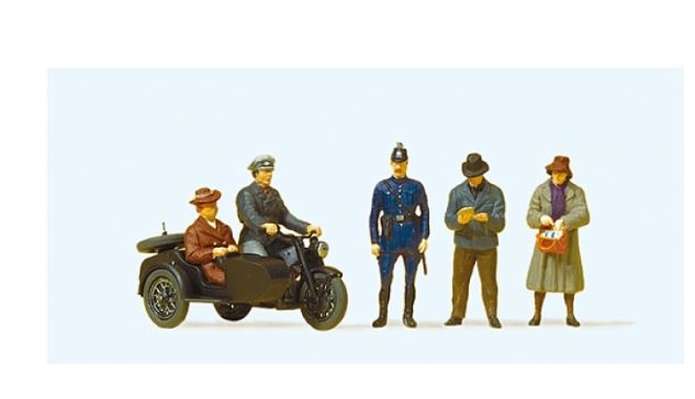 Preiser 10565 Zündapp KS 750 med bivogn og passagerer, tidlig epoke III, H0