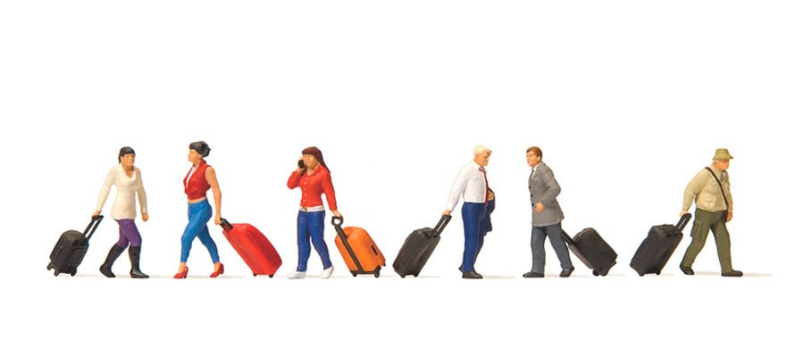Preiser 10640 Gående rejsende med kufferter, seks personer, H0