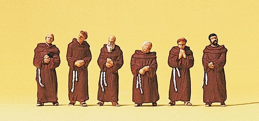 Hver figur er omhyggeligt håndmalet og udformet til at fremstå så livagtige som muligt, hvilket gør dem perfekte til både historiske og religiøse temaer i din modelverden. Med deres realistiske udtryk og klassiske munkekutter bringer disse figurer en følelse af ro og tidløshed.