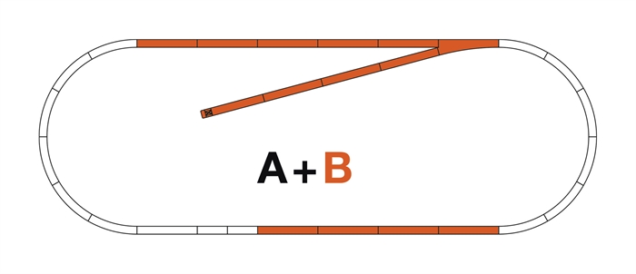 Minimumskonfigurationen Sporsæt A er inkluderet i alle startsæt med ROCO LINE ballastspor og fås ikke som et enkelt sæt. Alle andre sporsæt er baseret på denne samling. (A+B)