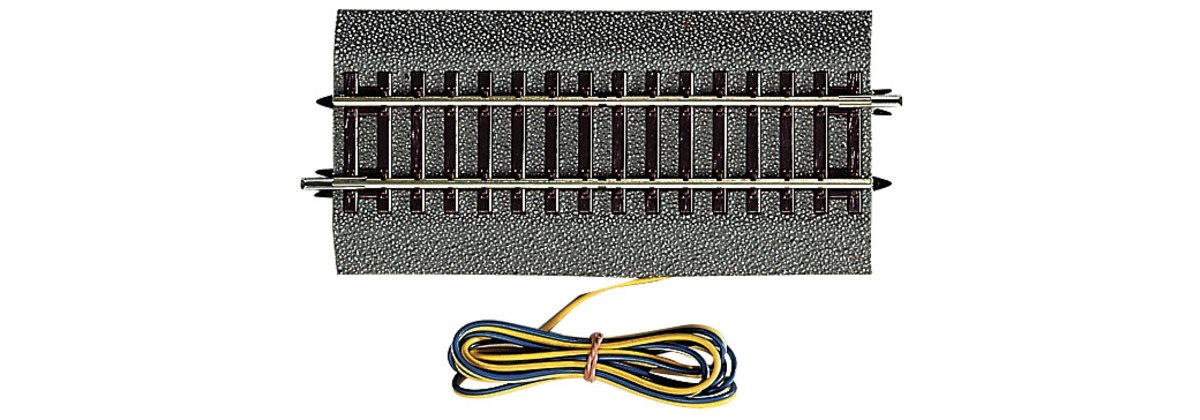 - **Længde:** 115 mm, hvilket svarer til en halv standardlængde, ideel til mindre eller mere kompakte sporlayouts. - **Funktioner:** Inkluderer ballast for realistisk udseende og stabil installation samt en effektiv EMC-støjdæmper, der minimerer elektrisk støj og forstyrrelser.