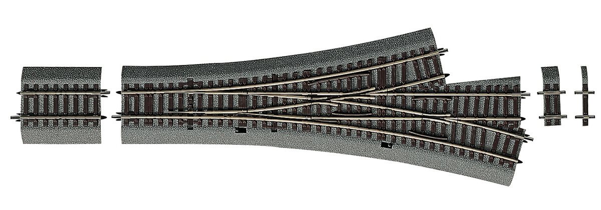 Asymmetrisk 3-vejs sporskifte DWW15 med ballast, manuelt betjent.