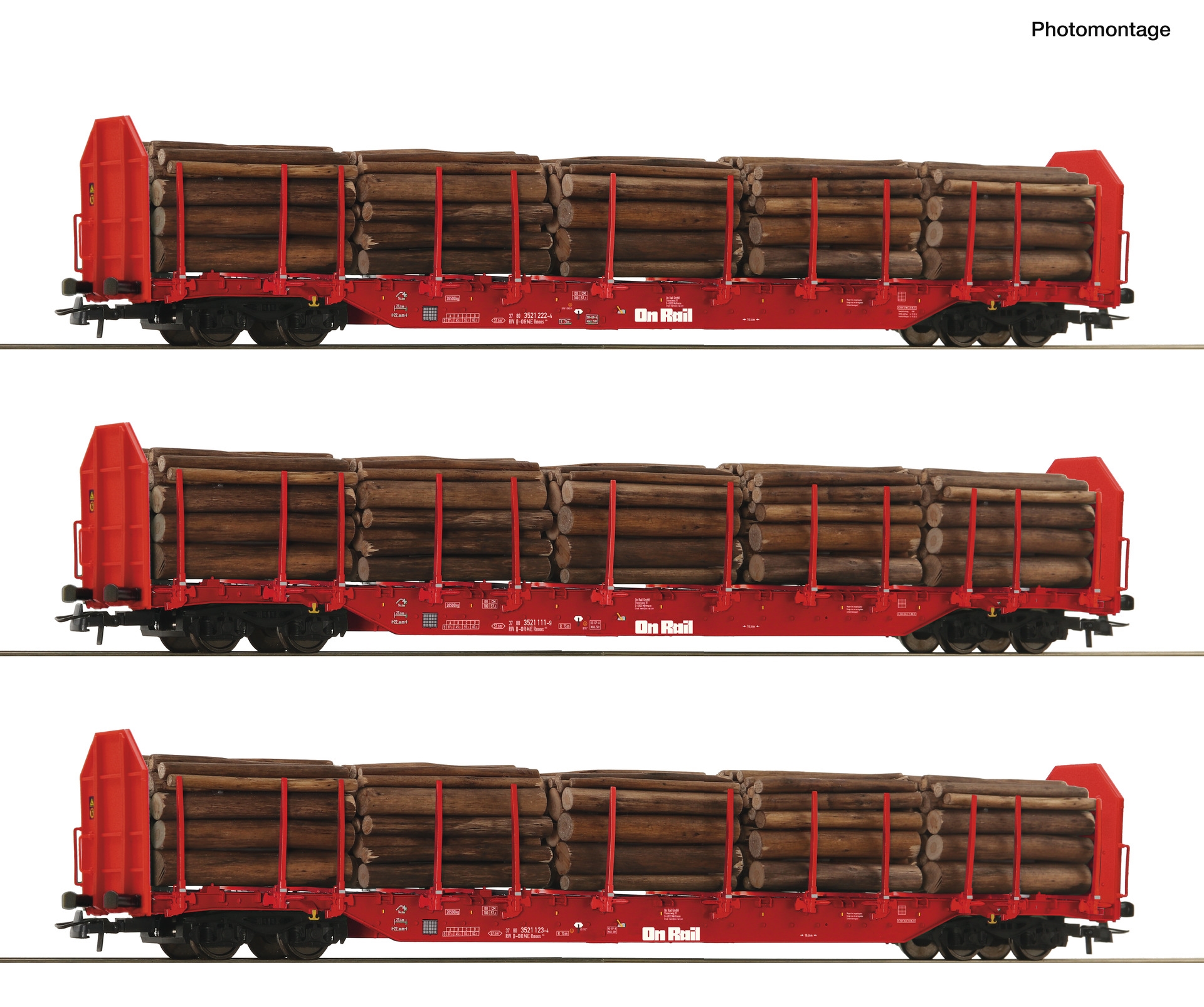 Roco 6600318 3 delt. Sæt: Kæpskinnevogne med træ, OnRail, KOMMENDE NYHED 2026