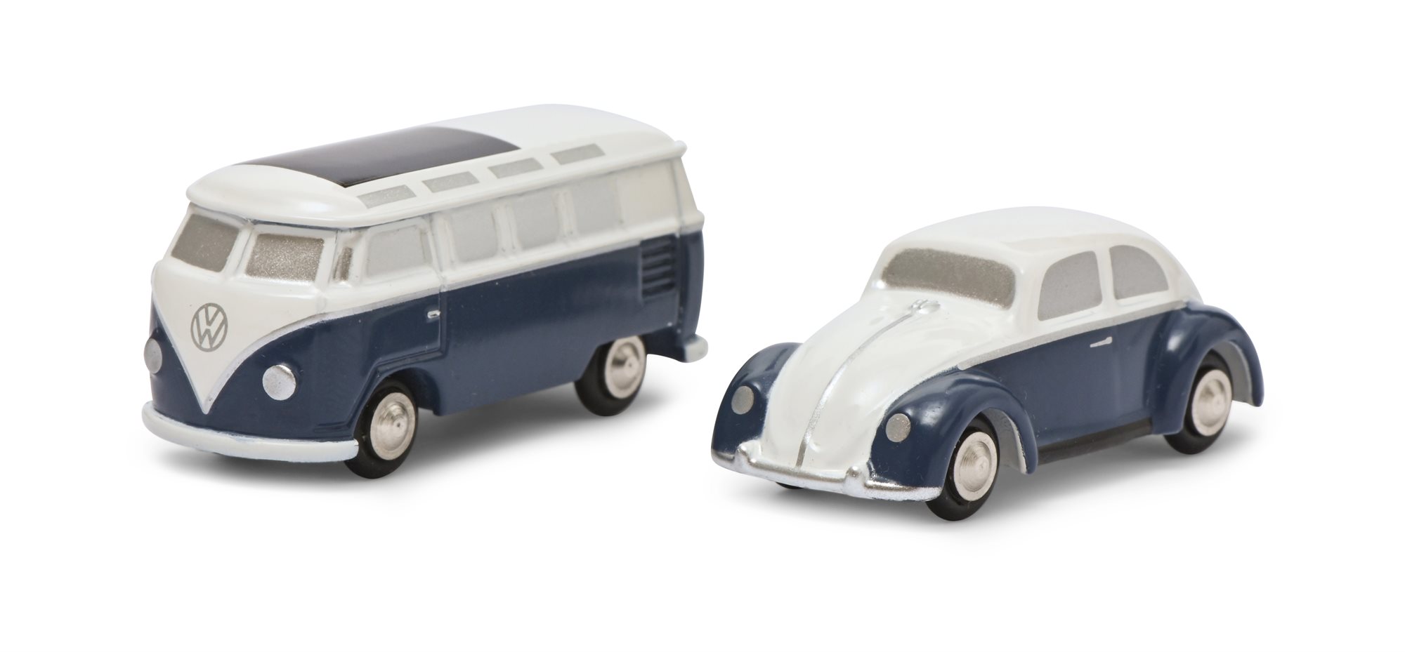 Schuco 14600 Piccolo 2er-Sæt VW (VW Käfer + VW T1 Samba hvid/blå), H0