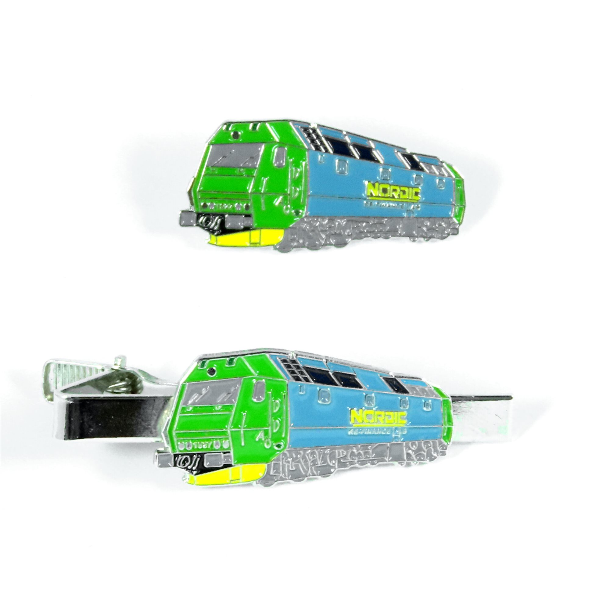 Forestiller TME 1527 i nyeste bemaling fra Nordic Re-Finance, fås både som slipsenål og pin.
