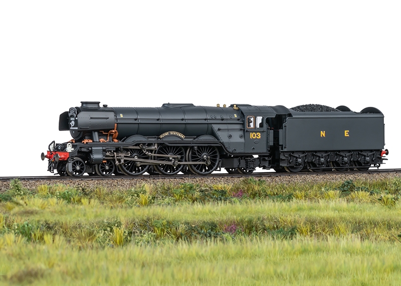 Verdensberømte, hurtige, stærke og en rigtig legende: damplokomotivet med det klingende navn "Flying Scotsman" satte en række verdensrekorder og skrev jernbanehistorien. I årtier flyttede det det britiske eksprestog af samme navn, som løb fra Edinburgh til London og tilbage uden at stoppe. I 1934 blev det det første damplokomotiv, der nåede den magiske hastighed på 100 Miles / time (160 km / t) og senere endda turnerede USA og Australien. For 100-årsdagen for dette trecylindrede magt lokomotiv udgav Märklin den nuværende museumsvariant i en berømt grøn malingsfinish i 2023. Nu følger som en særlig version en sort variant, som fortæller en fascinerende epoke i lokomotivens historie med ekstraordinære funktioner. I løbet af den 2. Verdenskrig og et par år senere gav det berømte grønne farveskema plads til en ædel sort bemaling, som mange britiske damplokomotiver bar i løbet af denne tid. Mod slutningen af den generelle revision, som begyndte i 2006, blev det sorte farveskema igen valgt for at beskytte lokomotivet under den endelige samling og test. I løbet af denne tid havde unge og gamle mulighed for at opleve den flyvende skotter i denne unikke stat, oprindeligt i 2011 og 2012 på "Railfest", en stor jernbanefestival, der fandt sted samtidig med de olympiske lege i London og 800-årsdagen for byen York. Lokomotivet bar sidst dette maleri i januar / februar 2016 for yderligere test og testdrev. Lokomotivet modtog derefter sit grønne maleri af de britiske jernbaner og glædede jernbanefansene over hele landet og videre under nummer 60103. I den nye fremragende Märklin-model lever denne specielle variant af den flyvende skotter i lille skala og fortæller et andet vigtigt kapitel i livet af denne fascinerende europæiske dampgigant.