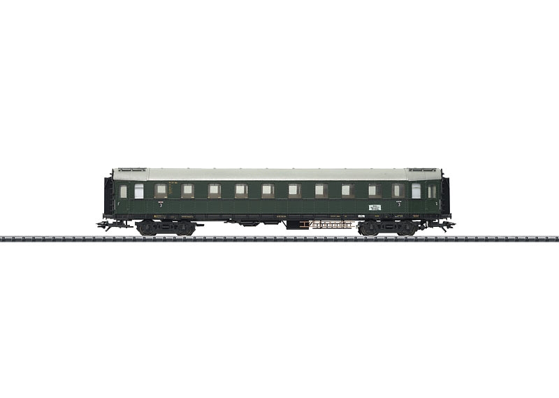 Model: Epoke III. Detaljeret udførelse i fuld længde. Typespecifik undervogn og typespecifikke svanehalsbogier. Gengivelse af driftstilstand fra Epoke III i flaskegrøn. Indvendig belysning 66719 er klar til montering. NEM-koblingslommer med kinematik. Minimumsradius for drift: 360 mm. Længde over buffere: 237 mm.