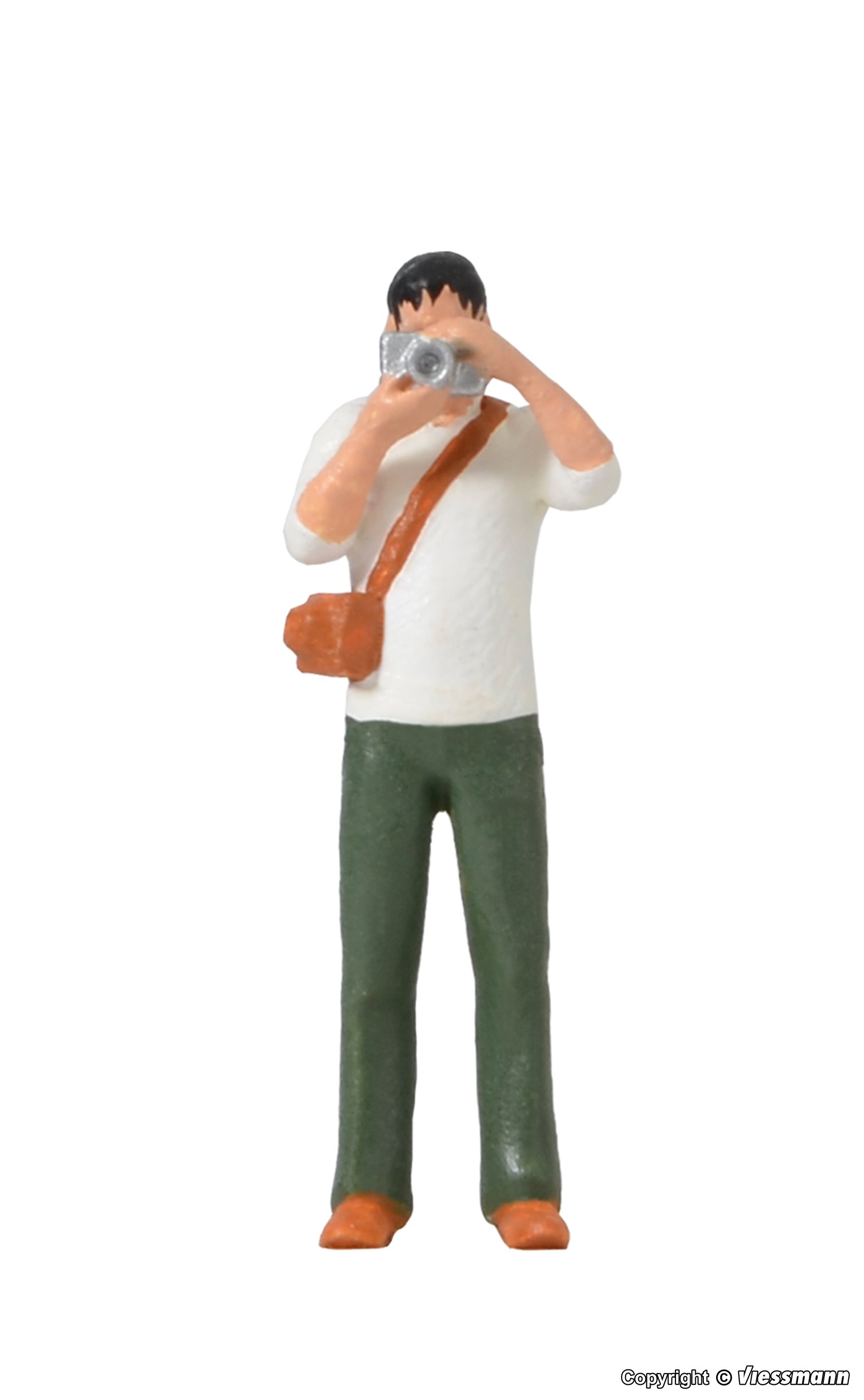 Opdag Viessmann 1519 H0 Fotograf med udstyr og blitz, det perfekte tilbehør til din modeljernbane, som tilføjer et realistisk touch til dine miniature scenarier. Denne detaljerede figur af en fotograf, udstyret med kamera og en funktionel blitz, fanger essensen af livagtige scener på din modelbane. Fotografen er designet med en mikro-LED, der simulerer en uregelmæssig blitz fra kameraet, hvilket skaber en dynamisk og autentisk atmosfære.