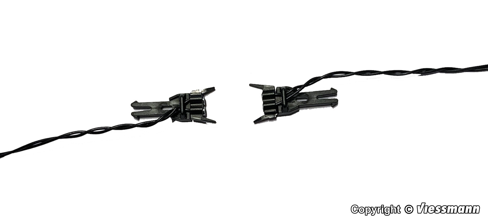 Disse koblinger giver dig mulighed for at levere en nem strømforsyning til hele toget. Koblingerne er komplet udstyret med 2 tilslutningskabler og passer til standard NEM 362-koblingsskaftet. Koblingerne er berøringssikre og kan ikke afkobles automatisk, men er nemme at adskille og koble til. De tynde kabler (0,6 mm) muliggør en meget nem montering. Strømforbrug: maks. 750 mA.