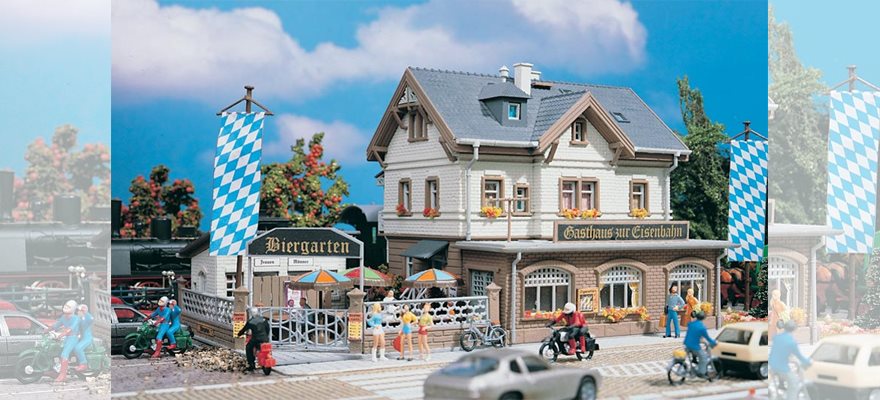 Opgrader din modeljernbane med den autentiske 'Vollmer 43663 Banegårdsrestaurant i H0-skala'. Dette detaljerede byggesæt repræsenterer en klassisk banegårdsrestaurant, der tilføjer realisme og charme til enhver modeltoglayout. Med dimensionerne L 20 x B 12 x H 11,5 cm passer denne model perfekt ind i et H0-skala togmiljø, hvilket gør den ideel for både erfarne samlere og nye entusiaster.