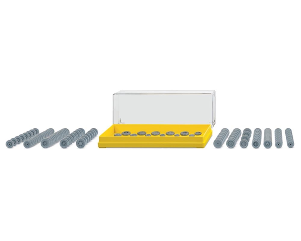 8 mm/rundnav, 8 x bilhjul/Ø 8 mm/glatnav, 16 x bilhjul/Ø 7,5 mm, 8 x gaffeltruckhjul/Ø 7 mm;